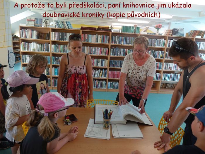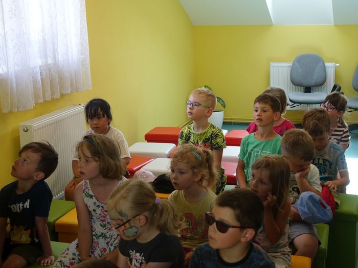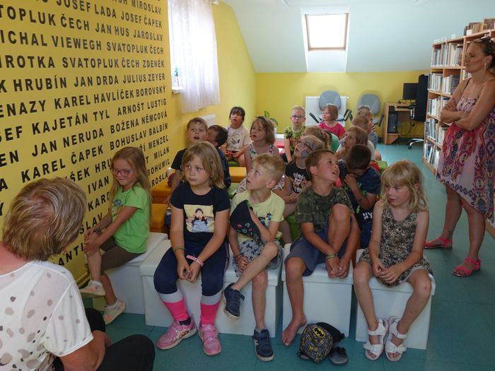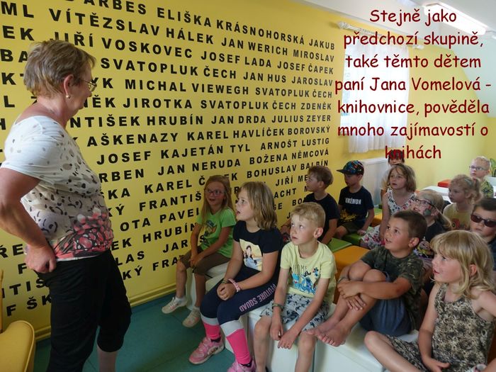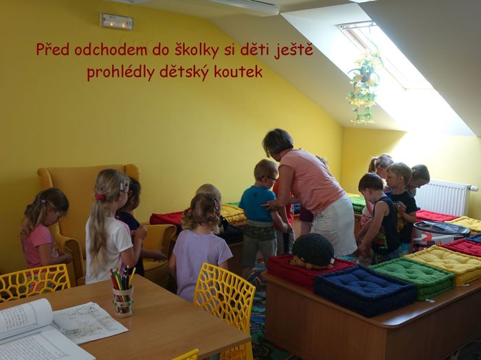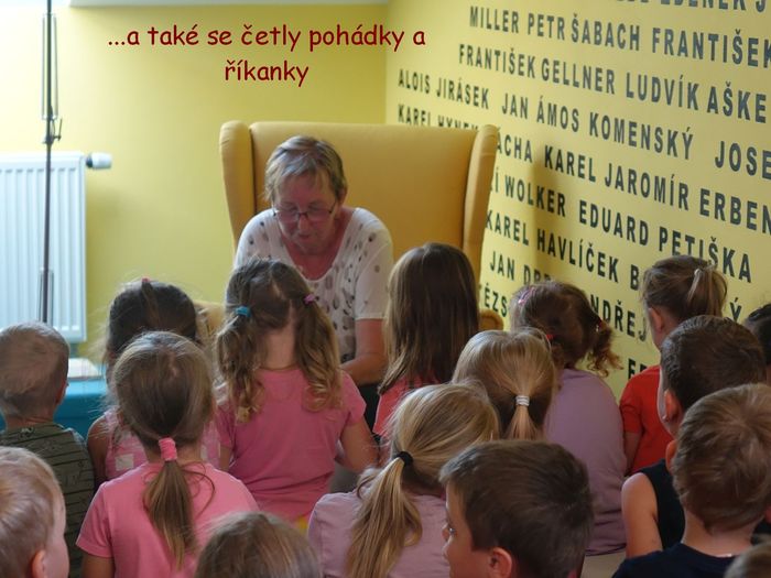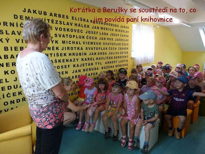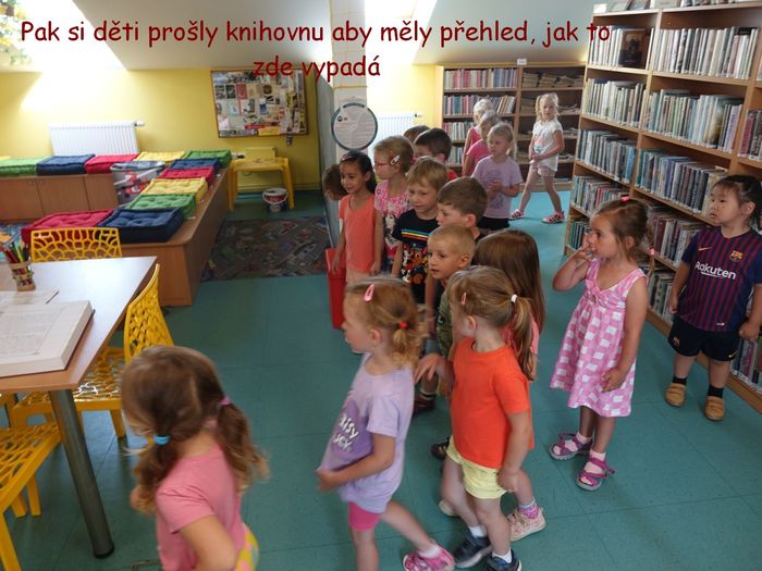 Proč bychom nemohli na začátku nového týdne navštívit knihovnu? Mohli! Pozvání od paní knihovnice Jany Vomelové máme, tak jdeme na návštěvu. Ale ne všichni najednou. Knihovna je sice poměrně prostorná, ale tolik Berušek, Koťátek a Ježečků se tam najednou nevejde. Děti byly spokojené - dozvěděly se spoustu zajímavostí, všechno důkladně prohlédly a slíbily, že přijdou - jednou, až budou umět číst. Tak uvidíme, jestli sliby dodrží!