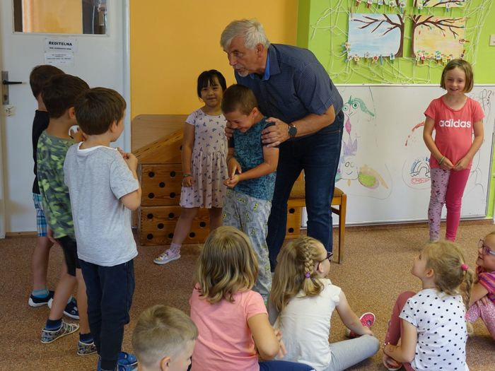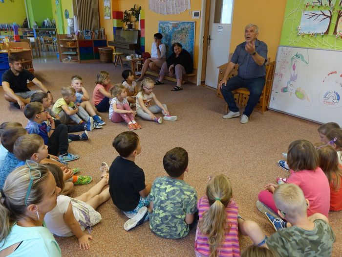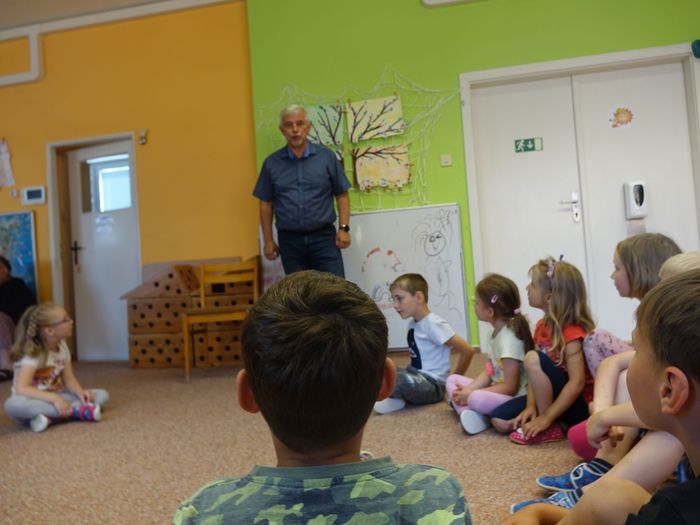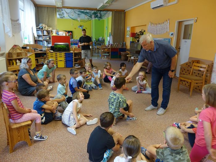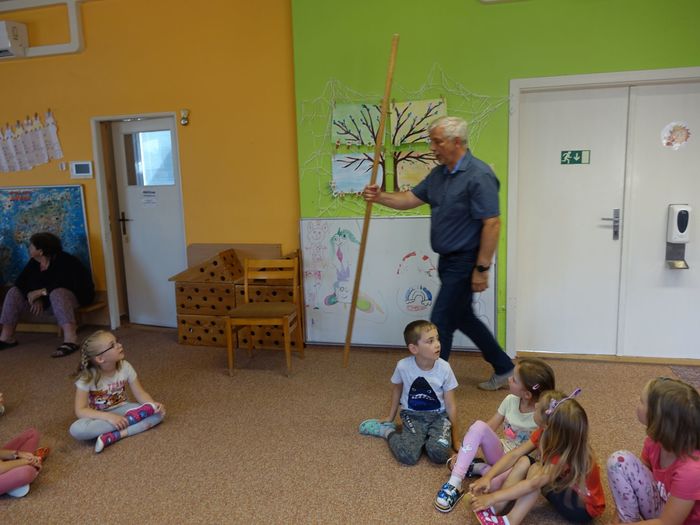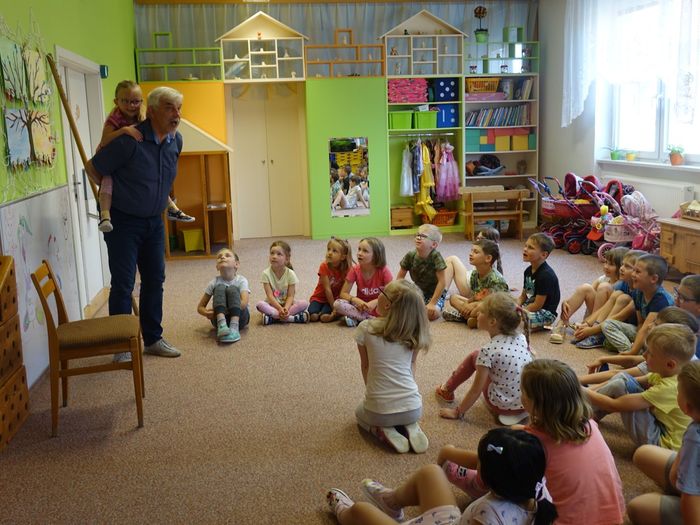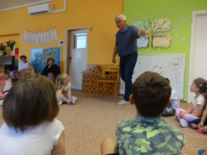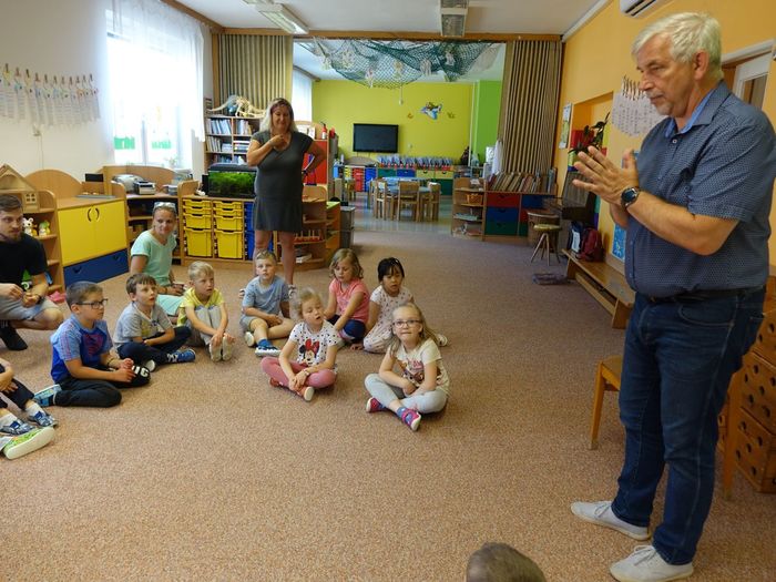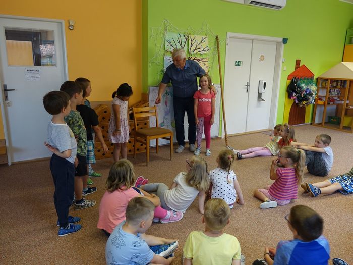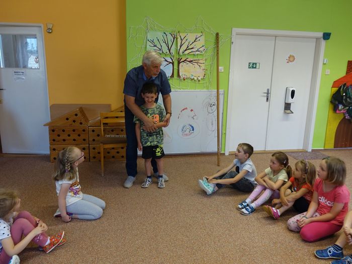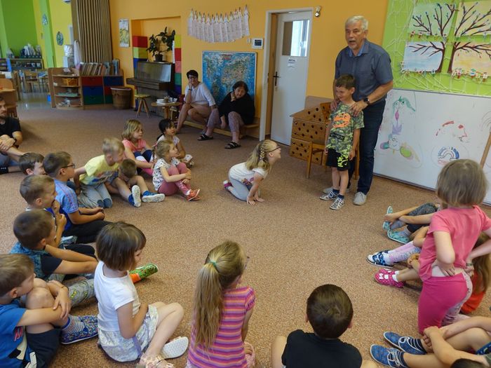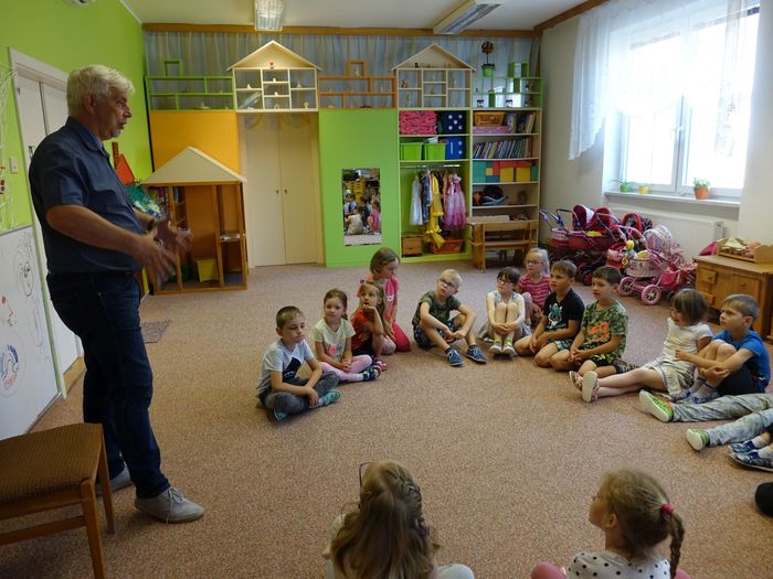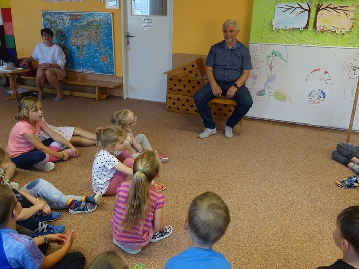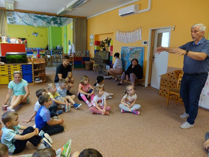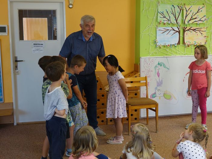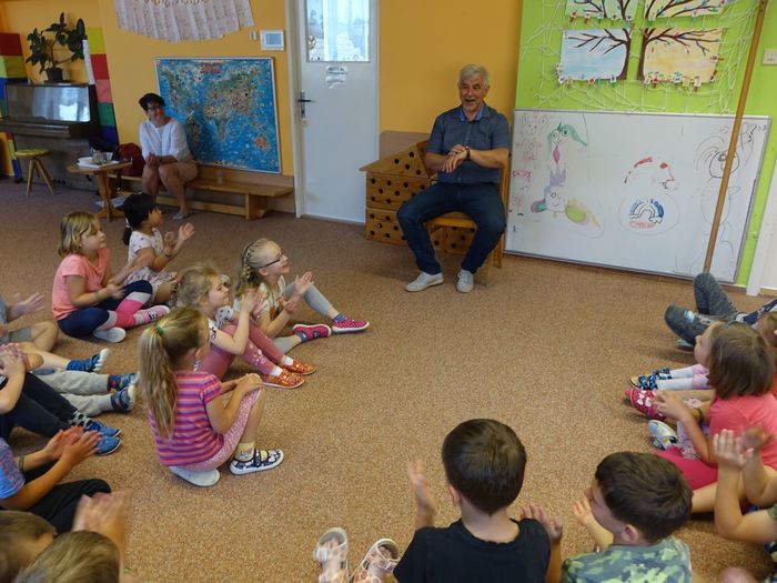 Ve čtvrtek 16. června přijel do naší mateřské školy pan Zdeněk Peša (zástupce MAS Boskovice), aby třídě předškoláků představil knihu, kterou sestavil ze starých pověstí, které se ústně přenášely z generace na generaci lidí, kteří bydleli v okolí řek Svitava a Svratka. Začal samozřejmě pověstí O založení hradu Doubravice, potom následovala pověst O Hejkalovi a protože dětem se povídání moc líbilo, přidal ještě pověst O vodnících na Křetínce.