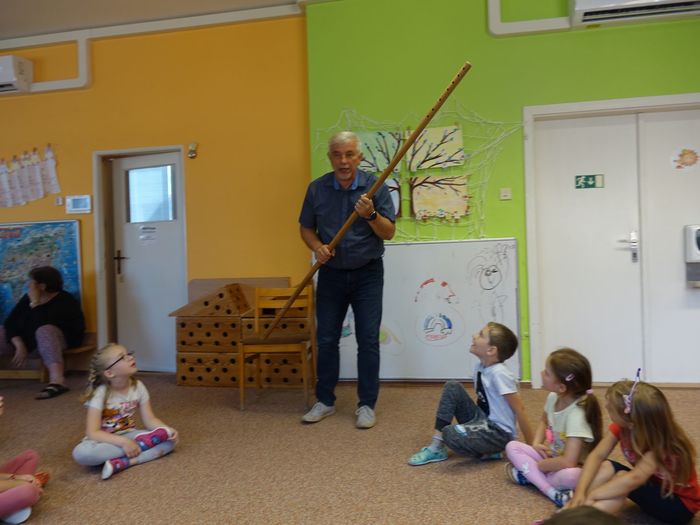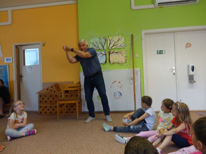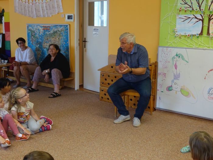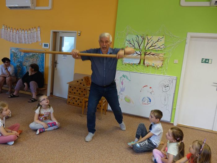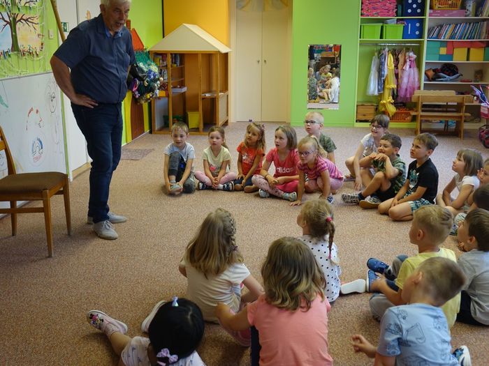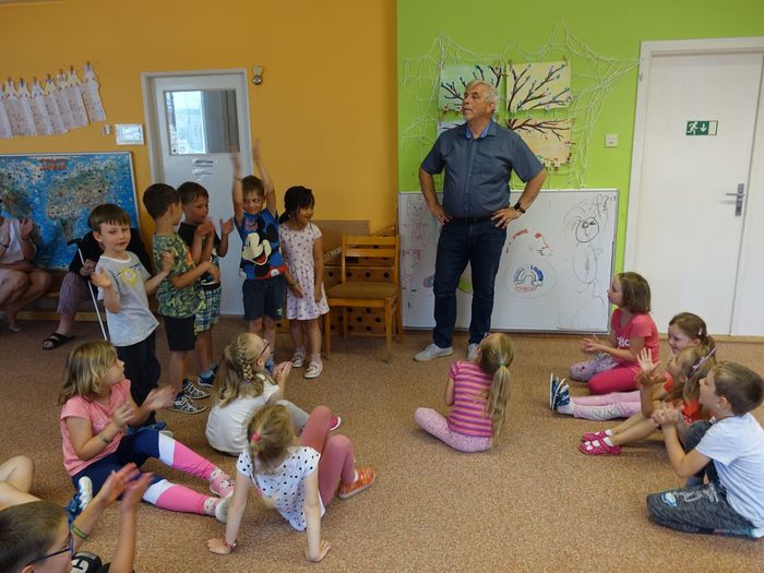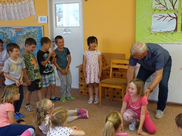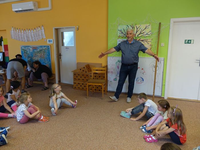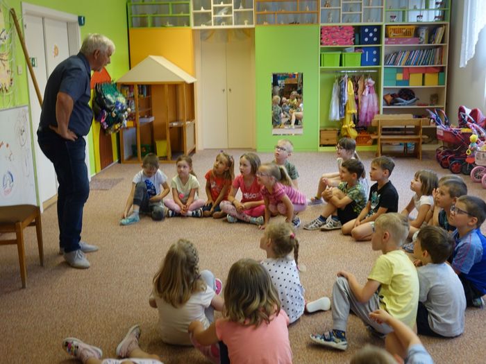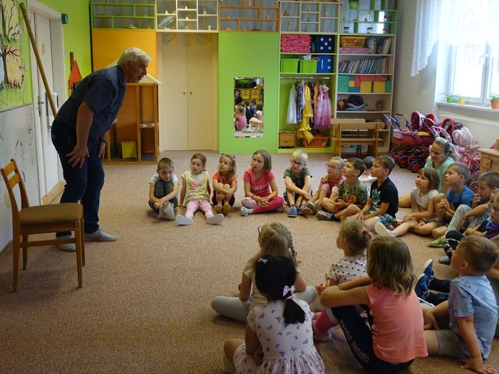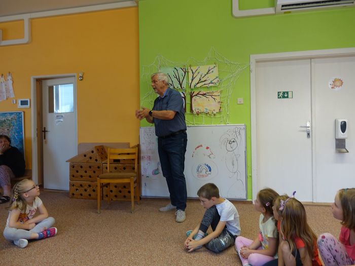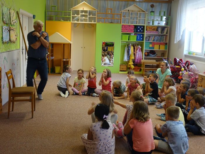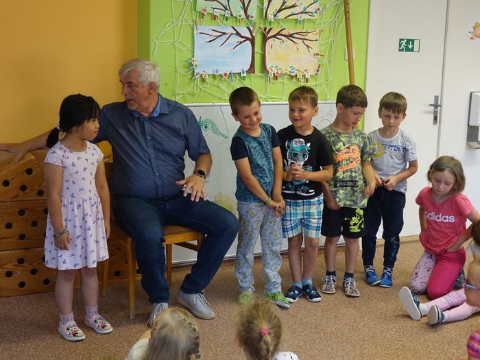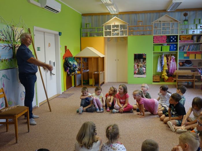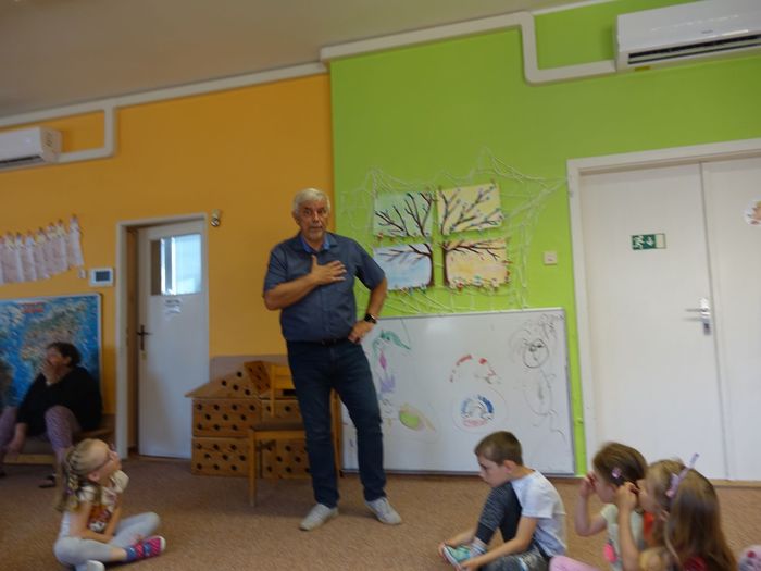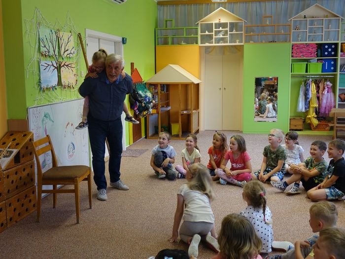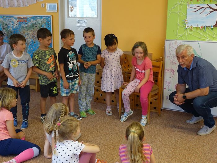 Ve čtvrtek 16. června přijel do naší mateřské školy pan Zdeněk Peša (zástupce MAS Boskovice), aby třídě předškoláků představil knihu, kterou sestavil ze starých pověstí, které se ústně přenášely z generace na generaci lidí, kteří bydleli v okolí řek Svitava a Svratka. Začal samozřejmě pověstí O založení hradu Doubravice, potom následovala pověst O Hejkalovi a protože dětem se povídání moc líbilo, přidal ještě pověst O vodnících na Křetínce.