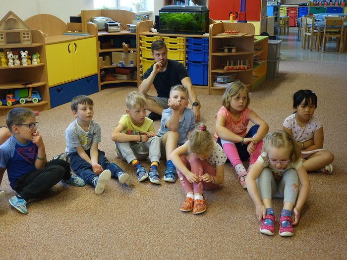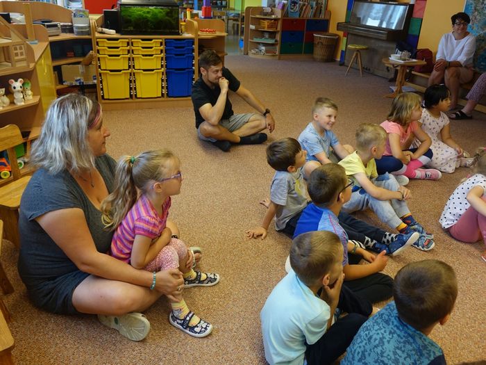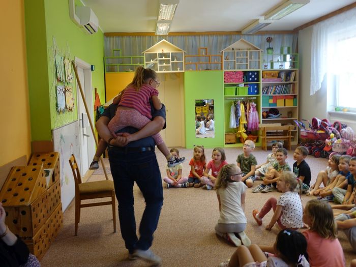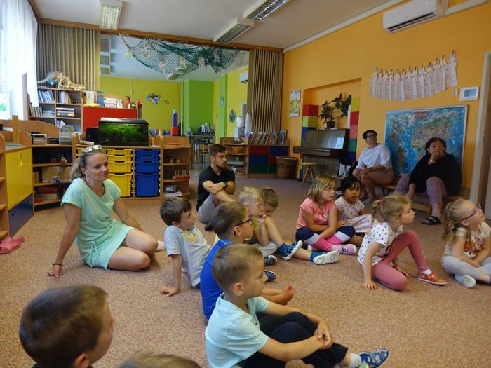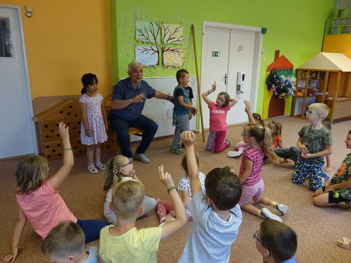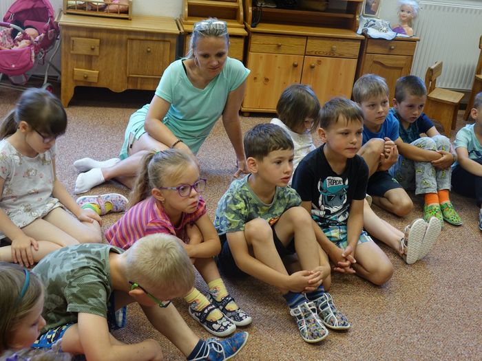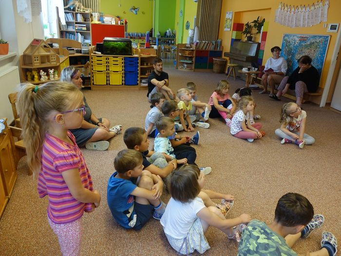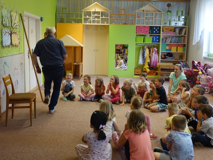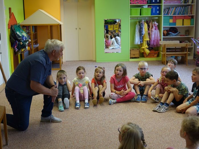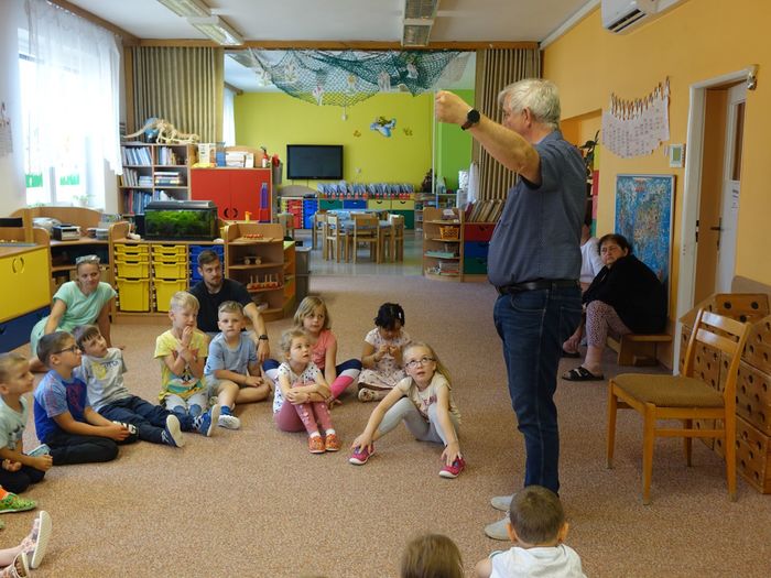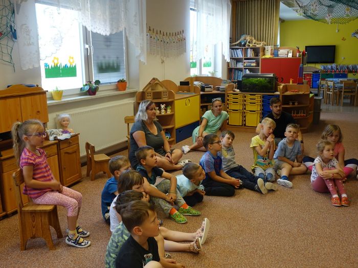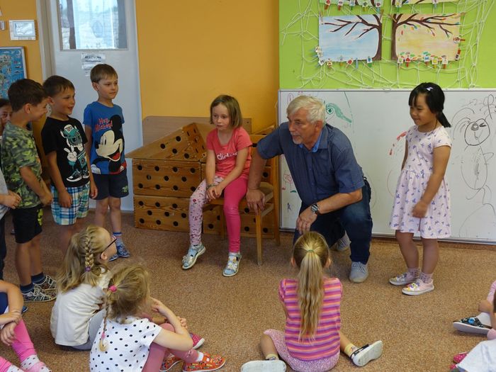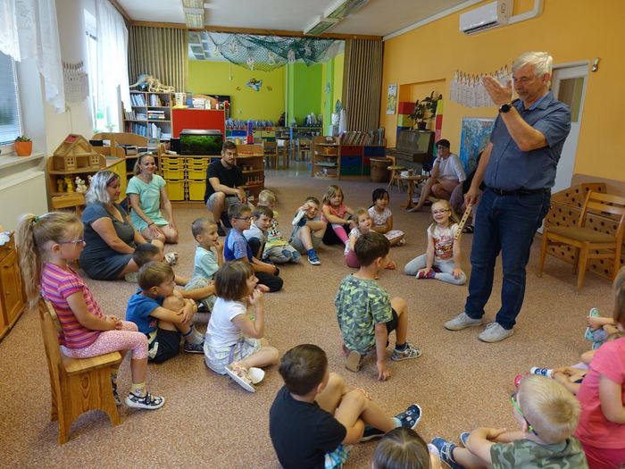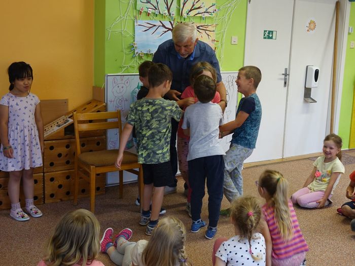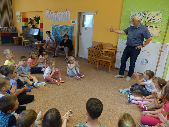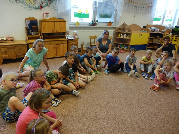 Ve čtvrtek 16. června přijel do naší mateřské školy pan Zdeněk Peša (zástupce MAS Boskovice), aby třídě předškoláků představil knihu, kterou sestavil ze starých pověstí, které se ústně přenášely z generace na generaci lidí, kteří bydleli v okolí řek Svitava a Svratka. Začal samozřejmě pověstí O založení hradu Doubravice, potom následovala pověst O Hejkalovi a protože dětem se povídání moc líbilo, přidal ještě pověst O vodnících na Křetínce.