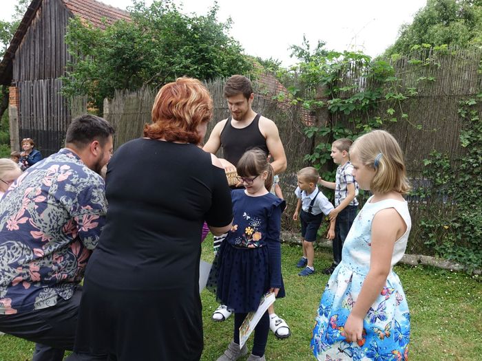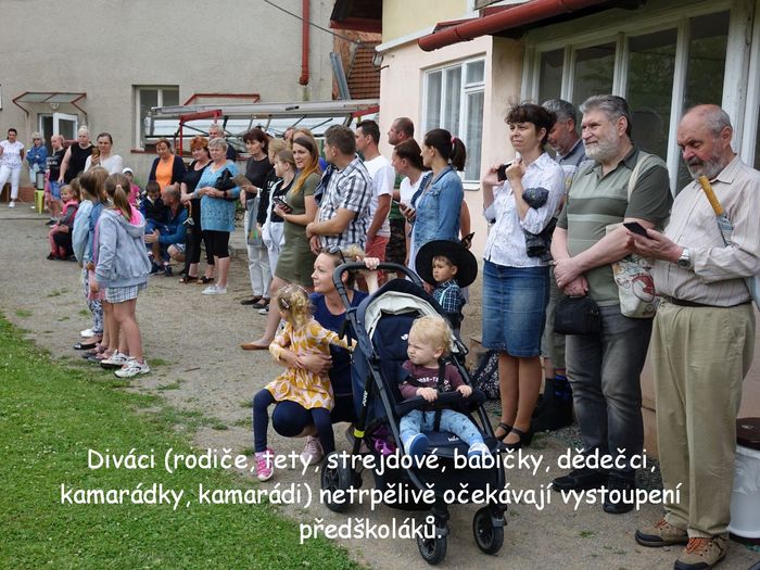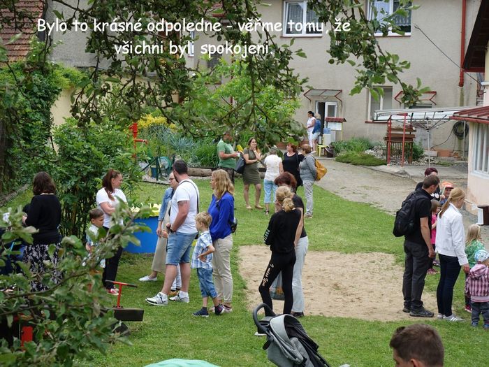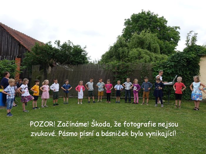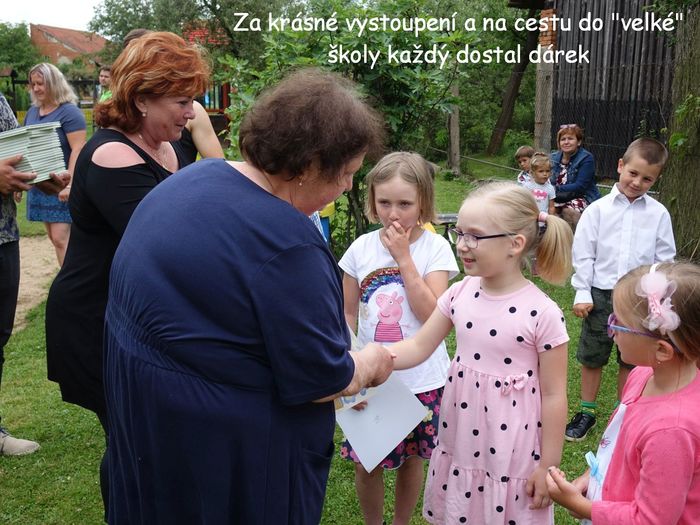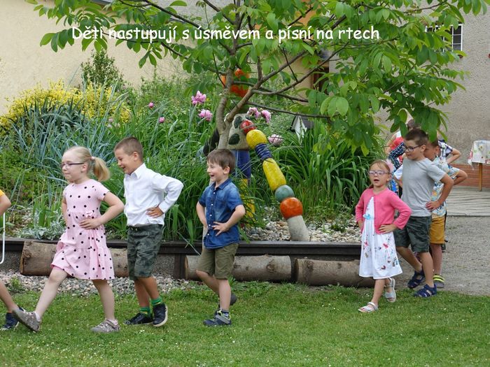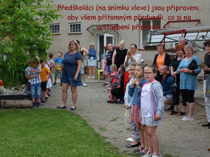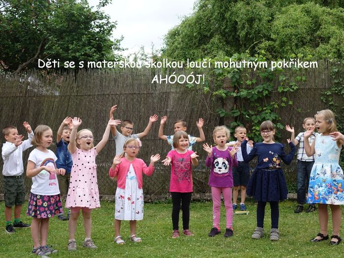 30. června končí v naší mateřské škole dvacet dětí, které 1. září nastoupí do základní školy. Tak se podívejte, jak se s nimi celá mateřská škola rozloučíla. A když říkám celá škola, tak opravdu všichni - paní ředitelka, paní učitelky i pan učitel, a samozřejmě také pracovníci, vlastně pracovnice, bez kterých by školka nemohla řádně fungovat. Starají se totiž o jídlo, pořádek v budově a pořádek také v krásné školní zahradě. A samotní přeškoláci všechny překvapili. Jejich vystoupení, které s nimi nazkoušely paní učitelky Žáčková a Závišková a pan učitel Žaluda, bylo skvělé. Závěrečný velký potlesk byl zasloužený.