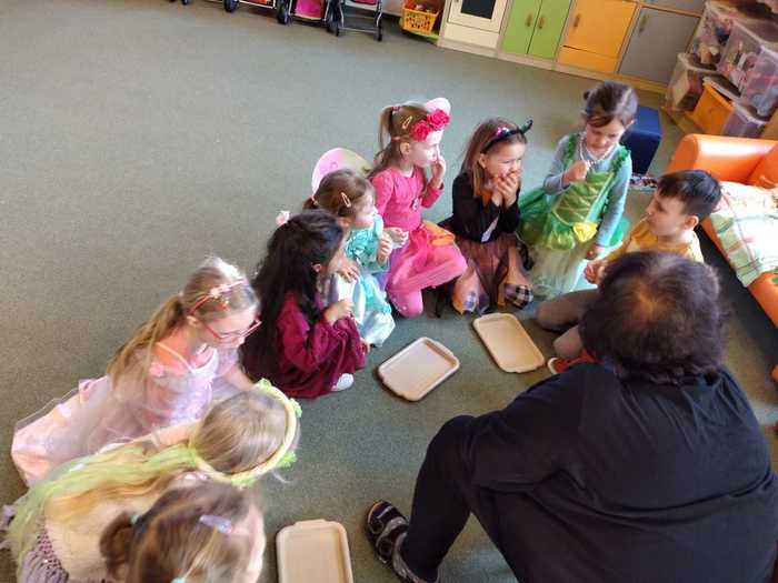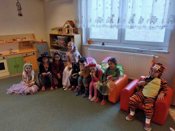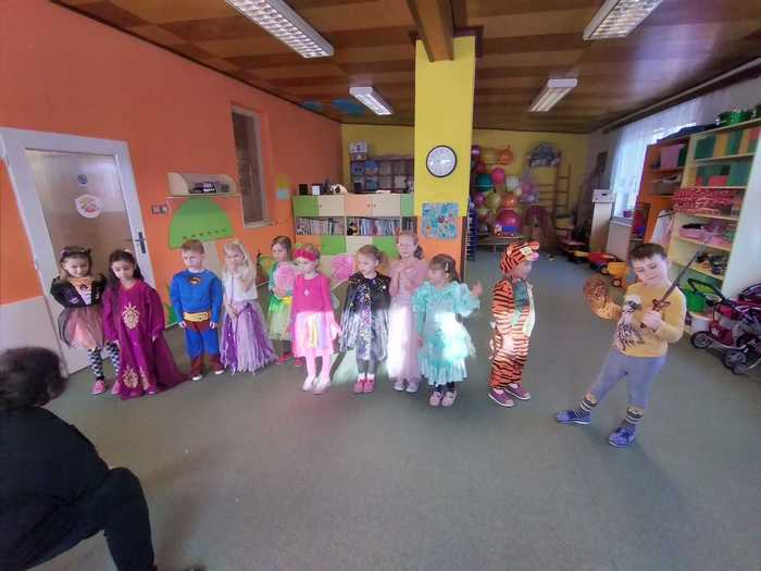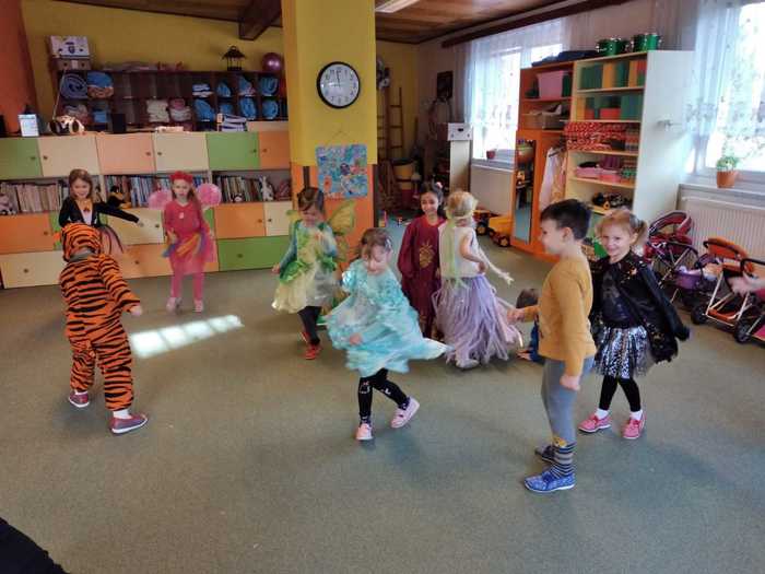 Děti ve středu 8. března přišly v kostýmech. Dopoledne bylo potom plné her a soutěží. Mezi jiným také soutěž o nejlepšího tanečníka a nejhezčí masku. kdo myslíte, že vyhrál? No přece všichni, kteří byli dnes ve školce v kostýmu...